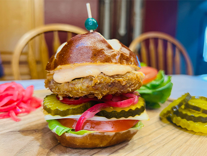 Our chicken sausage patties make the perfect base for this crisp and tangy slider that’s stacked with all the fixings of your favorite restaurant chicken sandwich.
